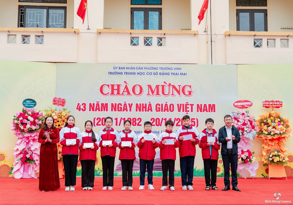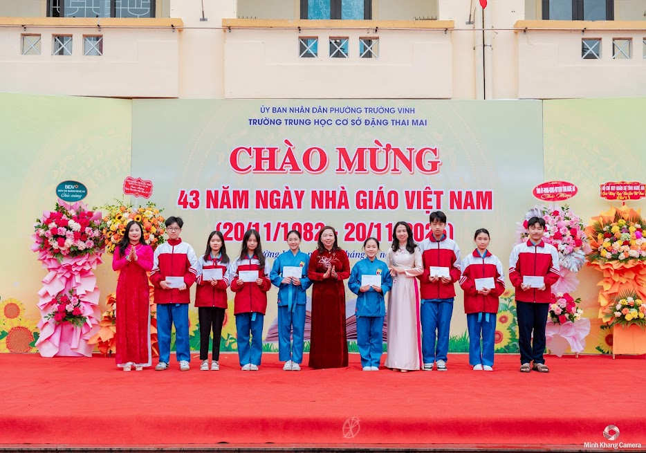 Thay mặt cho Ban đại diện Cha mẹ học sinh toàn trường, các bác trong Ban chấp hành hội đã trao tặng các thầy cô giáo lẵng hoa tươi thắm nhất với tất cả tấm lòng biết ơn gửi tới những người đang tiếp nối truyền thống “trồng người” cao quý. Đây là nguồn động viên tinh thần to lớn đối với nhà trường trong hành trình đi tới.